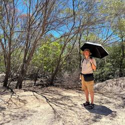 Ich fragte mich, warum ich so lustlos war, und mir wurde klar, dass es einfach an der Hitze lag. Temperaturen über dreißig Grad waren wir auf dieser Reise zwar gewohnt, aber in Australien fühlte sich die Sonne besonders stechend an. Der UV-Index lag wohl bei 13 oder so – jedenfalls weit über dem, was ich in Deutschland jemals erlebt hatte. Den ganzen Tag bei diesem Wetter wandern gehen? Ob wir eigentlich noch ganz bei Trost waren?