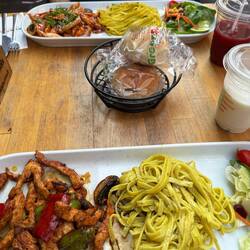 Abends aßen wir auf der asiatischen Seite in einem Marktviertel zu Abend. Der Weg führte uns durch eine Eisenwarenstraße, die mich an das alte Cheonggyecheon in Korea erinnerte, und dann durch eine Gasse voller Billigschmuckläden, bis wir schließlich in einer kleinen Essensstraße landeten, wo wir Pasta bestellten.