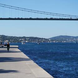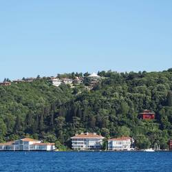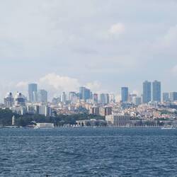 Nachmittags haben wir dann eine Schifftour den Bosporus rauf gemacht. Aber statt 30€ für einen Vergnügungsdampfer haben wir lieber in Summe 4€ für öffentliche Verkehrsmittel bezahlt, denn der Bosporus wird kreuz und quer von Schiffen befahren, die zum öffentlichen Nahverkehr gehören. Am nördlichsten Punkt hatten wir einen entspannten Aufenthalt an einer Uferpromenade mit Blick auf das asiatische Ufer. Dann wieder mit dem Schiff zurück zur asiatischen Seite für ein kleines Abendessen und schließlich mit der Marmaray nach Hause gefahren. Das ist die S-Bahn Linie, die unter dem Bosporus durchgeht. Außer dass diese Teilstrecke etwas länger dauert, bekommt man davon aber nichts mit.