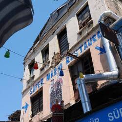 Von der Brücke haben wir auf der anderen Seite den Galatturm gesehen und dachten, den könnten wir besteigen wegen der sicher sehr schönen Aussicht. Also sind auf wir den Berg hochgelaufen, nur um zu sehen, dass die Warteschlange endlos ist und sich nicht vorwärts bewegt. Nächster Plan: Wir fahren mal zum Geziplatz. Da sollte uns eine Straßenbahn hinbringen zu der wir hinlaufen mussten. An der Station stand, dass die leider vorrübergehend nicht fährt und wir sicher Verständnis haben. Um die Ecke gibt es auch eine U-Bahnstation. Aber die war verrammelt. War heute etwa wieder Demo auf dem Geziplatz?