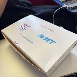 Weil wir das Ticket etwas spät gebucht hatten, war die Economy-Klasse schon ausgebucht, also sind wir Business gefahren. Es ist so komfortabel, dass man richtig Lust bekommt, etwas zu schreiben. Die Zugbegleiter haben uns sogar Lunchpakete gebracht und Tee eingeschenkt – ich hatte Spaß beim Essen.