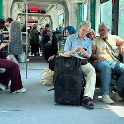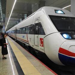 Mit dem schweren Gepäck bei der Hitze Straßenbahn und U-Bahn zu wechseln, war ziemlich anstrengend – vor allem über das holprige Kopfsteinpflaster auf dem Weg zum Bahnhof. Weil wir spät in Ankara ankommen, haben wir vorher noch schnell ein paar Sandwiches und Wasser fürs Abendessen besorgt und sind dann in den Bahnhof gegangen.