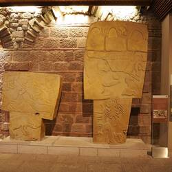 Die inneren waren bei einer großen Ausgrabung 1907 noch vorhanden, aber stark beschädigt. Eine wurde nach Istanbul gebracht, die andere zur Reparatur nach Berlin. Und da stand sie dann. Es kam der erste Weltkrieg, der zweite Weltkrieg, dann waren sie in der DDR und erst nach 1990 hat die Türkei stark auf Rückgabe gedrängt. Es dauerte dann noch bis 2011, bis sie endlich wieder zurückkam. Heute stehen beide im Museum in Boğazkale. Im Gelände hat man weiße Kopien angebracht.