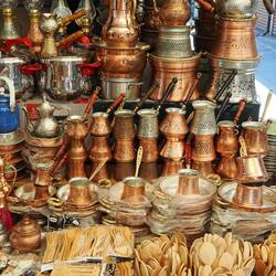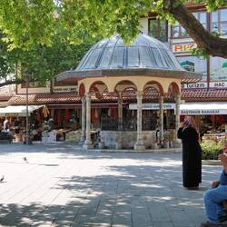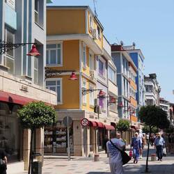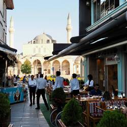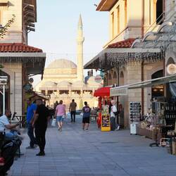 Es gab eine Fußgänger- Einkaufszone mit modernen jungen Geschäften. Hier haben wir ein paar Häuser mit Charakter gesehen, die wohl älteren Ursprungs sind und gut gepflegt waren. Ansonsten sind die Häuser in türkischen Städten halb verfallen, wenn sie alt sind, funktional für Geschäfte aber häßlich, moderne geschmacklose Protzbauten oder es sind diese neuen Wohnsiedlungen, die auch eintönig wirken. Einfach mal in die Stadt gehen und die Architektur genießen ist in der Türkei nicht möglich.