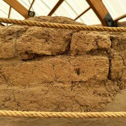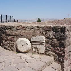 Wenn man zu dem Gelände der ehemaligen Stadt Ḫattuša kommt, sieht man als erstes einen rekonstruierten Abschnitt der alten Stadtmauer. Dies ist ein Stück experimentelle Archäologie, es wurde nur mit den alten Techniken gebaut. Die Form ist teilweise nach auf Keramiken gefundenen Bildern gewählt.