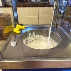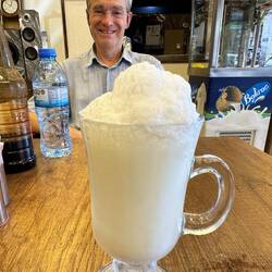Zurück sind wir dann erst durch die Fussgängerzone gelaufen. Da gab es wieder etliche Eisstände. Die rühren ständig mit einer dicken Stahlstange artistisch in den Eisklumpen rum. Das sieht sehr anstrengend aus und die haben auch meisten dicke Armmuskeln. Eiskaufen ist ein Abenteuer. Die Verkäufer ziehen eine ziemliche Show ab.