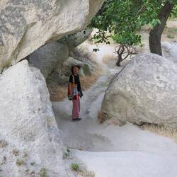 Es ging auf diesem Weg vorbei an Grundmauerresten der Stadtmauer und etlichen Stadttoren, von denen die Bögen mit den Hochachtung einflößenden Statuen noch teilweise vorhanden waren, u.a. das Löwentor, das Sphinxtor und das Königstor. Beim Sphinxtor standen außen und innen je 2 Sphingen (das scheint der Plural von Sphinx zu sein).