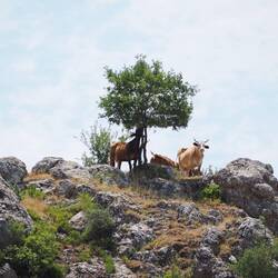 Das Gelände steigt im Laufe des Weges immer weiter an, wir mussten auf einem 6km langen Rundkurs knapp 300m Höhe erwandern. Wir waren etwas über 5 Stunden unterwegs. Zum Glück lag die Temperatur nur bei 30°C, aber leider ohne Schatten.