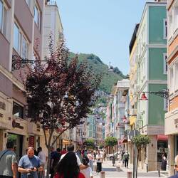 Von oben hätte man eine tolle Aussicht, nur leider war es heute etwas dunstig, keine gute Voraussetzung für Fotos. Ansonsten gab es oben einen Vergnügungspark, aus dem Alter sind wir aber raus. Und den markanten Funkturm ganz aus Stahl, der mal einen neuen Anstrich gebrauchen könnte. Aber in dem Gebäude, in dem die Standseilbahn ankommt, gibt es ein Restaurant mit Terrasse direkt über der Stadt, und dort war es nicht sehr voll. Wir konnten also lange dort sitzen und die Aussicht genießen.