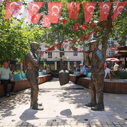 Heute nur ein paar Eindrücke von der Stadt. Die Schwarzmeerküste in der Türkei ist ein beliebtes Ziel für türkische Touristen. Ausländer kommen eher selten hierher. Auf unserem Fußweg vom Hotel zum Strand kamen wir bei diesem spektakulären Fuß- Radweg vorbei. Der Fußweg hatte einen Mittelstreifen. Was fehlte, waren die Radfahrer. Ein einziger Radweg macht eine Stadt halt noch nicht fahrradfreundlich. Vielleicht liegt es aber auch an der Hitze.