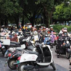 Der Film zeigt eine Szene bei unserer Abfahrt in Gunming, als wir auf das Taxi gewartet haben. Die Scooter erbringen hier fünfmal so viel Verkehrsleistung wie die Autos und bekommen dafür ein fünftel der Fläche. Ist doch fair, oder?
