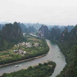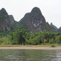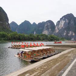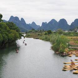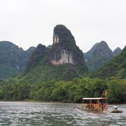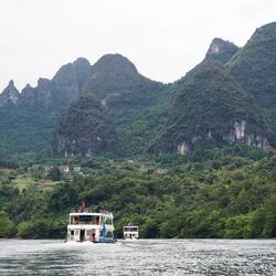 Teil eins war ein Fahrt auf dem Li Fluss in einem kleinen elektrisch angetriebenen Boot für vier Fahrgäste. Hier konnte man die Landschaft von unten sehen.