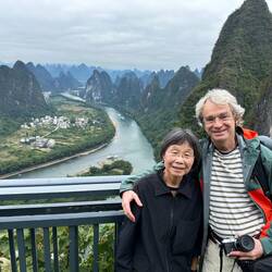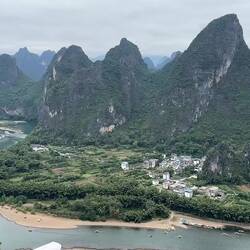 Für Teil zwei mussten wir einen Berg besteigen, was etwa 15 Minuten dauerte. Er liegt wohl an der schönsten Stelle des Li Flusses. Dort gibt es tolle Fotomotive, wo man die Landschaft eher aus einer erhöhten Postion sieht.