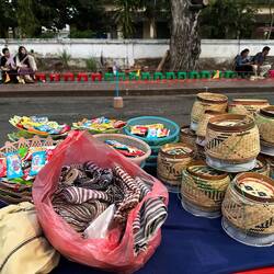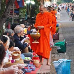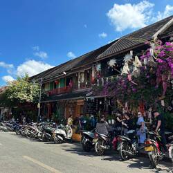Durch die alte Stadtmitte zieht sich eine lange gerade Straße, die Sakkaline Road, an der die meisten Geschäfte, Restaurants, Banken, zwei Schulen und mehrere Kloster liegen. Die laufen wir einfach bis zum Ende und sind beschäftigt. Das Ende liegt an der Mündung des Nam Khan Flusses in den Mekong.