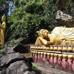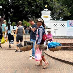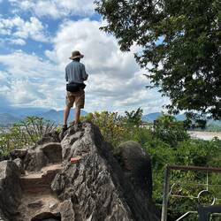 Danach erklimmen wir den Stadtberg Phusi. Man muss Eintritt zahlen. Man geht auf einer Seite Seite hoch und auf der anderen wieder runter. Das haben wir aber erst unten begriffen, weshalb wir am nächsten Tag nochmal trainiert haben, um die Buddhistischen Sehenswürdigkeiten auf der anderen Seite auch zu sehen.