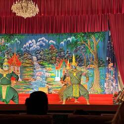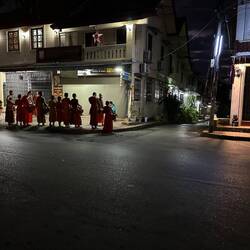 Am Abend gingen wir zu einer Aufführung im Museum, für die wir bereits am Nachmittag Tickets gekauft hatten. Von dem Hügel aus hatten wir tagsüber immer wieder Glocken- und Klingelklänge gehört, und Arnd war neugierig geworden. Auf der Bühne spielten einige Musiker traditionelle Instrumente wie Trommeln und ein xylophonähnliches Schlaginstrument, und dazu wurde klassischer laotischer Tanz aufgeführt. Die Tänzerinnen bewegten ihre langen, schlanken Finger auf geheimnisvolle Weise und tanzten sehr ruhig und anmutig. Die männlichen Tänzer trugen arabisch aussehende Hosen. Ich war neugierig, ob sie traditionelle laotische Tanzkleidung sind. Hatten die Laoten früher Kontakt mit der arabischen Welt?Read more