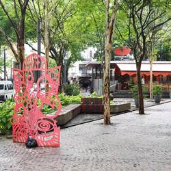 Das erste Ziel war ein Flop. Es war einfach ein ziemlich dunkles Hochhaus mit einem grünen Innenhof. Es lag in Downtown. Downtown in Singapur ist, wo die Banken ihre Hochhäuser stehen haben. Weil Sonntag war, war dort fast niemand und die meisten Restaurants waren geschlossen.