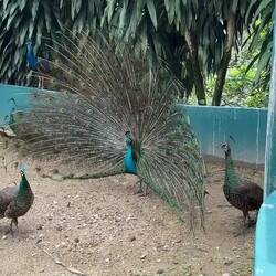 Der Park hat mehrere Bereiche, die jeweils von riesigen Netzen überspannt sind. Die Vögel haben deshalb sehr viel Raum und können recht frei fliegen. Und wir waren mitten drin.