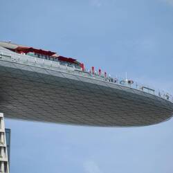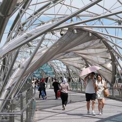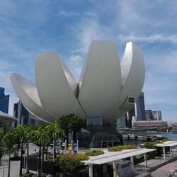 Auf der einen Seite lag das Marina Bay Sands Hotel, dieser Dreichfachturm mit Steg oben drauf. Da muss eigentlich auch jeder Tourist rauf. Das haben wir uns aber gespart. Nach den Gärten sind wir um das Hotel herum in Richtung Bay gelaufen und dann über die „The Helix“ genannte Brücke in Richtung einer U-Bahn Station gegangen. Dann war es Mittag.