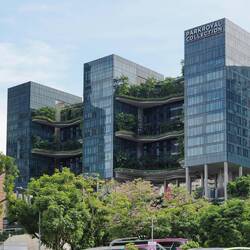 Ein anderes Thema, das wir hier anschauen wollten, sind die neuartigen grünen Gebäude. Wenn man in den Medien was über Singapur hört, dann gern, dass hier die Stadtbegrünung sehr fortschrittlich ist. Hea-Jee hat ChatGPT danach gefragt und einige sehr konkrete Tips bekommen. Wir haben das auf der Karte gesucht und dann einen Weg geplant, wie wir mehrere dieser Gebäude besuchen können.
