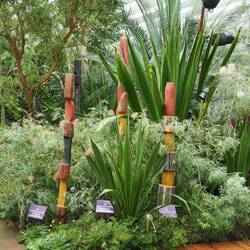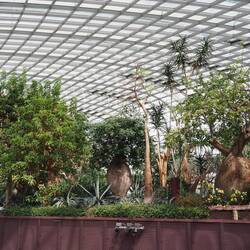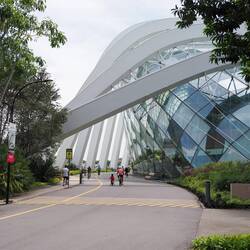 Die Gewächshäuser sind riesig, interessant geformt und mit modernen Bautechniken errichtet. Ich hatte die Befürchtung, dass es drinnen noch heißer sein würde, als draußen. Als wir das erste Gewächshaus betraten wurde aber sofort klar, dass es kühler ist, als draußen und zwar so deutlich kühler, das wir Sorge hatten, zu dünn angezogen zu sein. Der Grund dafür ist einfach. Die Singapurianer wollen auch exotische Pflanzen sehen. Da sie aber selbst auf dem Äquator wohnen heißt das, Pflanzen aus gemäßigteren Breiten, und die brauchen eher kühlere Temperaturen. Irgendwo stand ein Plakat, dass sie versuchen, das Kühlen mit umweltfreundlichen Methoden zu machen.