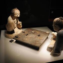 Beim Schach hatten sie das ursprünglich indische Spiel, aus dem das moderne Schach hervorgegangen ist, dem chinesischen Schach gegenüber gestellt. Das indische hat sich global durchgesetzt. Die Ausstellung begründet das damit, das man für die chinesische Variante die chinesische Schrift lesen können muss.
