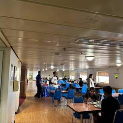 Wir verlassen Korea so, wie wir angekommen sind, mit dem Schiff nach Qingdao. Es fährt zwar erst am Abend ab, aber wir sollen schon um 15:30 im Fährterminal sein. So ist das ganze eine sehr entspannte slow travel Übung. Draußen ist es schon dunkel, als wir im Schiff sind, es gibt also nicht viel zu sehen und zu fotografieren.
