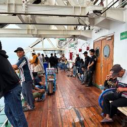 Wir wollen diesen Weg nehmen, weil die Alternative eine mindestens dreitägige Busreise durch Sumatra wäre, plus zwei kürzere Fährschifffahrten. Da erscheint die eine Fähre mit 30 Stunden Fahrzeit doch angenehmer.