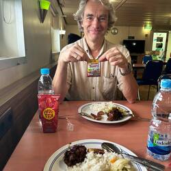 Nach einer Weile wurde ich aber hungrig, und mit sinkendem Blutzucker wurde auch meine Laune schlechter. Ich bin jemand, der nicht nur ein Mittagsessen braucht, sondern auch einen Snack zwischen Frühstück und Mittagessen, damit ich mich wohlfühle. Auf Reisen fällt meinen Snack aber ständig unter den Tisch. Arnd isst ja große Portionen auf einmal und versteht nicht, wie jemand wie ich lieber oft und kleine Mengen isst.