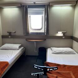 Wir sind morgens um 9:30 mit einer halben Stunde Verspätung angekommen. Bis wir ausgestiegen sind und den Stempel im Pass haben, ist es 10:30. Dann mussten wir noch das Internet einrichten. Ich hatte für die Weiterfahrt einen Zug um 13:15 gebucht, also mit reichlich Reserve, falls das Schiff mehr Verspätung hat. So konnten wir entspannt zum Bahnhof fahren, noch Mittag essen und dann ohne allzu lange Wartezeit in den Zug steigen.
