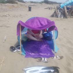Heute ist unser letzter Tag auf Porto Ercole. Darum haben wir den Tag wieder am Feniglio Beach verbracht. Dieses Mal bei den "Mamma Licia" Liegen. Das Wetter war heiss, aber auch sehr windig