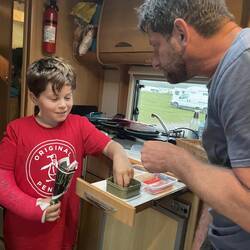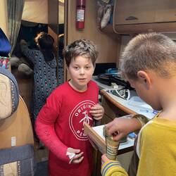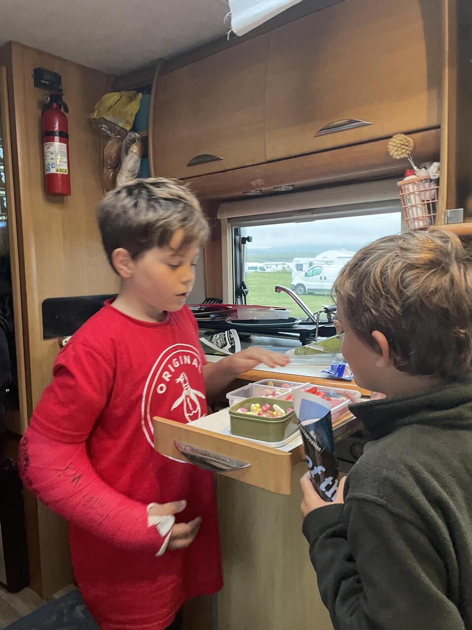 TravelerFilm nite and sharing the sweets out with David trying to muscle in and pinch them!