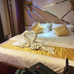 We were welcome to board with cocktails and showing to our cabins after a boat briefing.