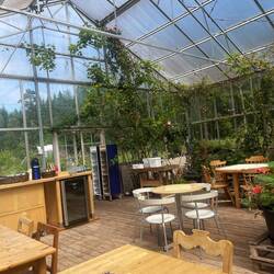 Im Schwedischen Nirgendwo ist jeder Flecken Zivilisation willkommene Abwechslung. Wie hier das Bio-Café mit eigener Bäckerei im Gewächshaus.