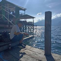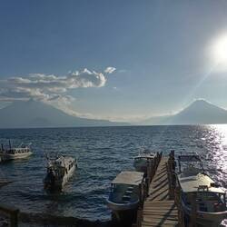 Arrivé au lac Atitlan, dans la ville de Panajachel. Le cadre est magnifique, je suis entouré par les montagnes et 3 volcans.