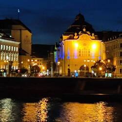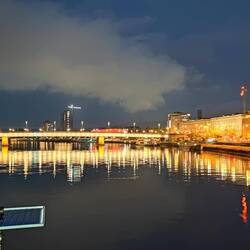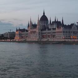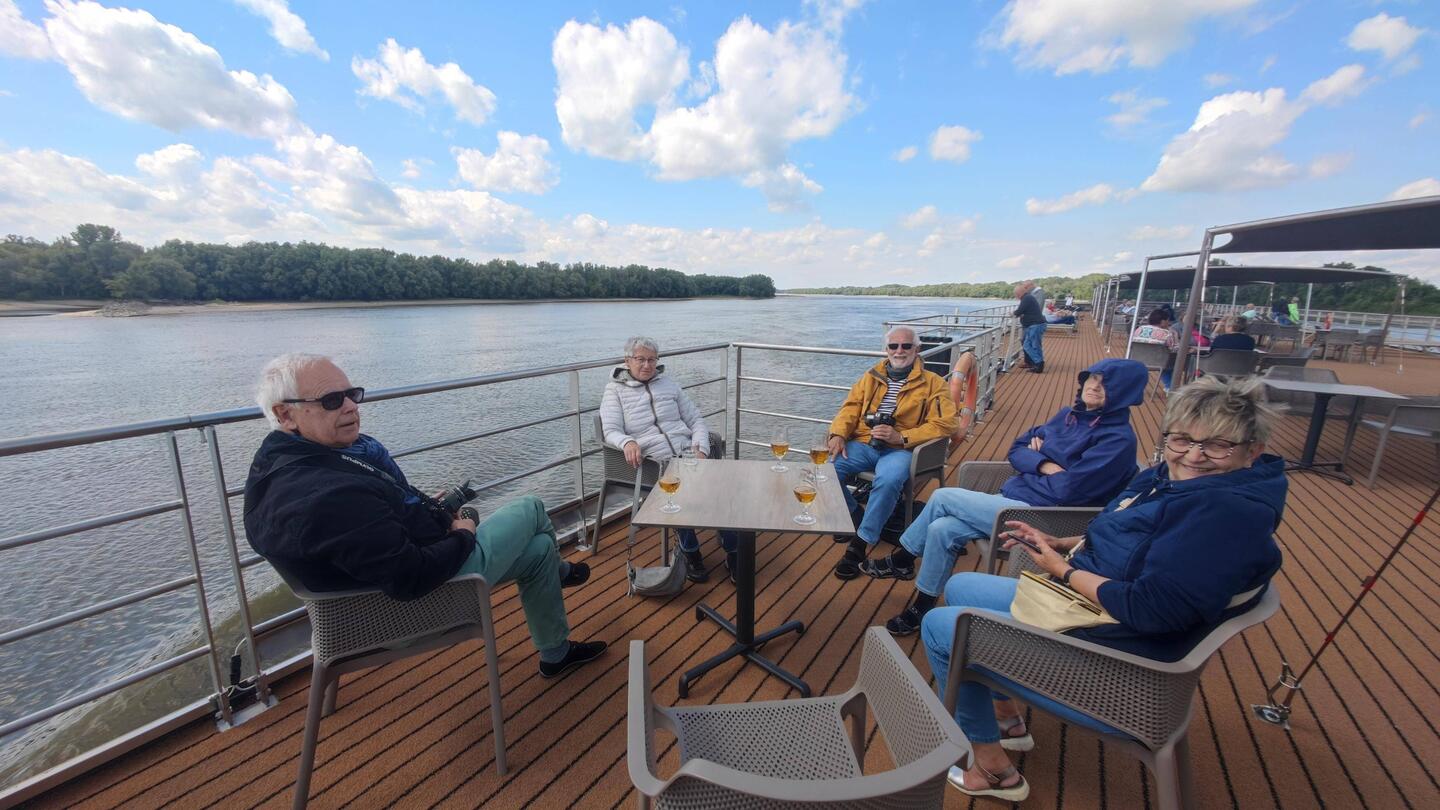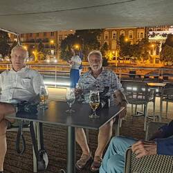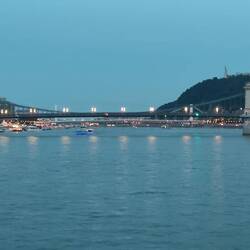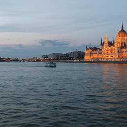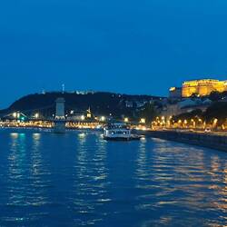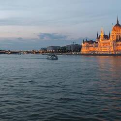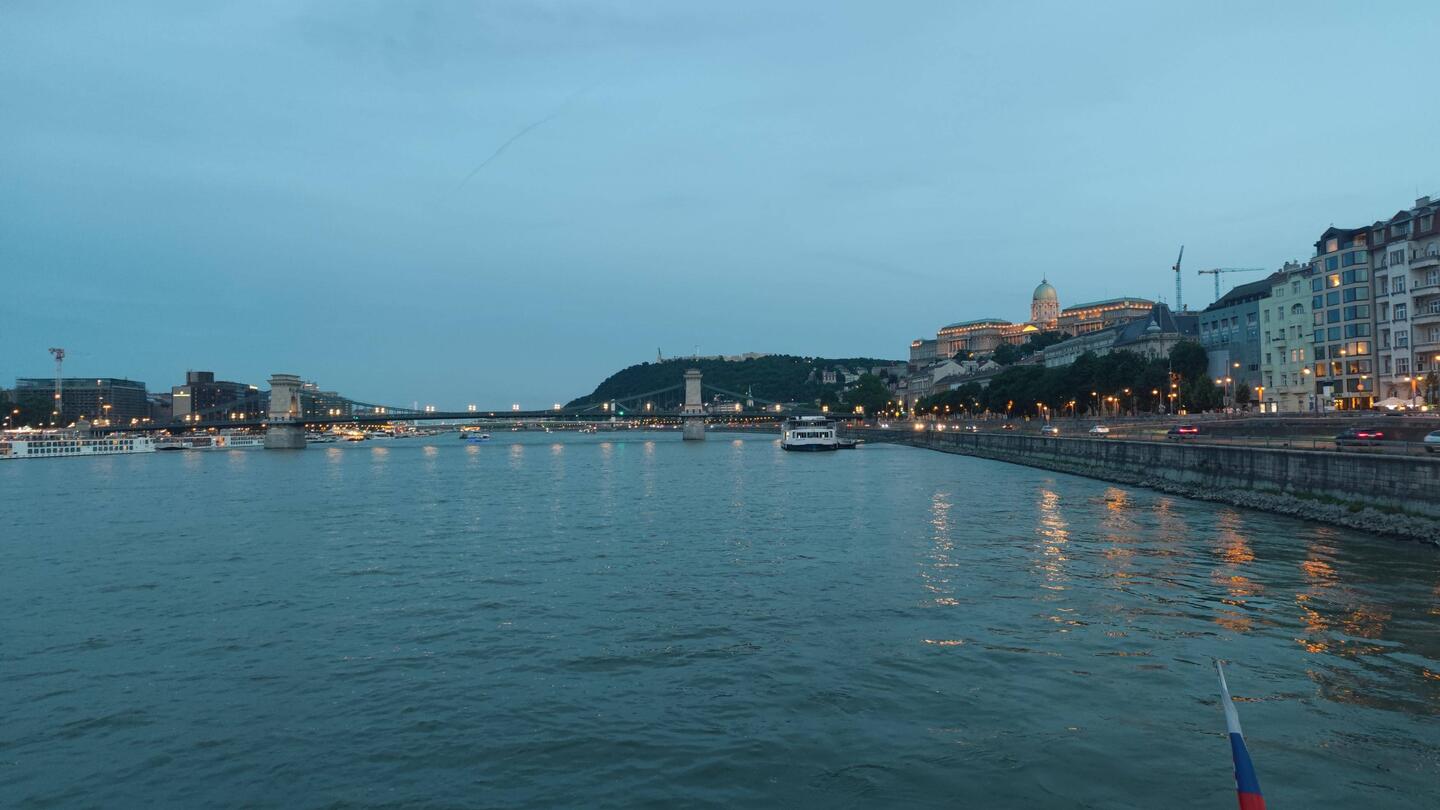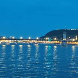 Bei angenehmen Temperaturen sitzen wir auf dem Sonnendeck der Albertina und genießen Budapest bei Nacht