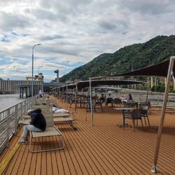 Wir frühstücken heute erst gegen 9:00. Schleuse "Eisernes Tor ll" 11:30 - 12:00. Mittagessen in Buffetform