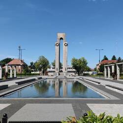 Szabadszag ut, Szechenyi Ter mit katholischer Kathedrale, Rathaus und Schule, Bensheim Platz, Freiheitsplatz mit Freuheitsdenkmal, Serbisch orthodoxe Krche
