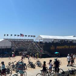 Um 14 Uhr marschierte wir schließlich los und brauchten knapp eine Stunde bis zum AVP. Vor Ort trafen wir uns mit dem Matt (Kickball Spieler). Ich hatte ihn seit unserer ersten Begegnung im Februar nicht mehr gesehen. Er wiederum brachte auch ein paar Freunde mit, die Maria und ich zufällig vom Beach Volleyball kannten. Wie klein die Welt einfach ist. So wurden wir immer mehr und mehr und feuerten bis zum letzten Spiel die Mannschaften an. 📣