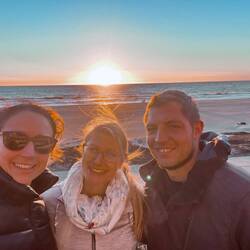 Eigentlich wollten wir am Mittwochabend auch noch Beach Volleyball spielen, allerdings machte uns der starke Wind einen Strich durch die Rechnung. Es stürmte sehr und so war der ganze Strand wie glatt gefegt und die Wellen trugen einen sichtbaren Teil vom Strand ab. Die Frisur saß keineswegs, aber zum Sonnenuntergang war der wüstenähnliche, leergefegte Strand ein wunderschöner Anblick.