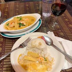 Allerdings gefiel mir das Ambiente des empfohlenen Restaurants überhaupt nicht. Es wirkte total steril und war grell beleuchtet. So schlenderte ich weiter durch die Straße, die von weihnachtlich dekorierte Palmen verziert wurde. In einem anderen Restaurant, das ein Thanksgiving Dinner anbot, war leider schon alles reserviert und so entschied ich mich, mein Thanksgiving Dinner nach meiner Art zu gestalten. Ich ging zurück zu einem Thailänder, den ich zuvor entdeckte hatte. Er hatte einen Platz für mich, servierte hervorragendes Essen und war um einiges billiger als ein ausgefallenes Thanksgiving Dinner.