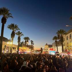 Ich fuhr also weiter Richtung LA. Mein nächster Stopp war Riverside. Auf einer Internetseite von Kalifornien hatte ich von einem Festival of Lights gelesen und nachdem auch das direkt auf dem Weg lag hielt ich nochmal an. Das Festival of Lights entpuppte sich als ein riesiger Weihnachtsmarkt. Zufälligerweise kam ich genau rechtzeitig zur Eröffnungsfeier am Mission Inn Hotel an, die das Fest veranstalteten. Es war die Hölle los, denn alle wollten die Eröffnungszeremonie sehen. Dabei werden traditionell die Millionen von Lichter angeknipst, die das Mission Inn Hotel verzieren. Außerdem findet ein Eröffnungsfeuerwerk statt. Auch ich war vom Lichterschmuck sehr beeindruckt! Ich schlenderte noch etwas durch die Geschäfte, schaute mir die Köstlichkeiten an, die an einem amerikanischen Weihnachtsmarkt verkauft werden und lauschte der Live Band, die Weihnachtslieder sangen.