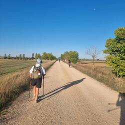 So off we set in the dark out of Carrion and again the moon was brightly lighting up the beautiful old buildings. We knew there were no toilets or villages for 17 km so on we walked through what our guide book describes as a somewhat featureless landscape. The morning was cool though and the path was really soft underneath the feet which makes a difference!