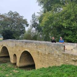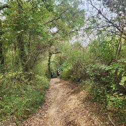 The walk today was through some very overgrown treed areas but pretty. Then it was more vineyards and fields being ploughed. Plus a very old roman bridge.
