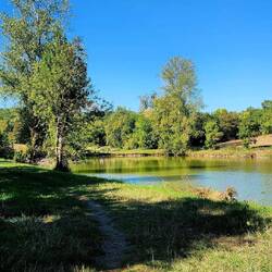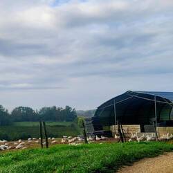 The first half of the walk was very pleasant through leafy paths under huge chestnut trees and lots of birdsong. We crossed over some streams which we dont see many of. After 10km we came to a "pate factory " where there was a huge variety of pate in tins plus fois gras. The best thing was that the very friendly man had coffee which was very welcome.