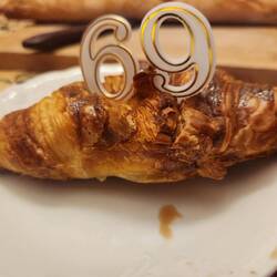 Last night another meal all around a big table with mainly french speaking people but an Irish couple living in Sydney now have joined the gang of walkers. Our young host Phillipe cooked us a delicious meal of roast chicken beans and potatoes and a sweet potato dish with beautiful salads first. Brian was in heaven as was a tad over duck! Dessert was apple pie and ice cream and a big happy birthday singsong with candles in the pie. My birthday had been going for 35 hours!