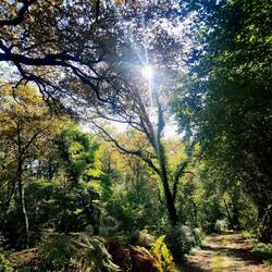 It was a great walk mostly and the hills were ok but good to get to the top of . This area seems not so isolated and the houses seemed grander . We walked through many areas of towering old oaks and chestnuts and quite a few cows grazing with the odd field of mature corn.