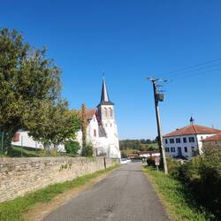 Then we saw a steeple of a church high on a hill so we decided that looked likely to be the church on a ridge we were to pass but once we got there to the top it didnt look right. I tried to to talk English to a man fixing power lines but who only spoke french and he didnt have a clue as to what I was asking and why should he.