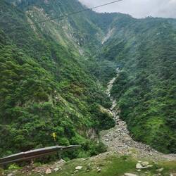 We had to go in cars as buses can't travel these roads but what they didn't say was that neither hardly can cars. We were with Bridge and Frank . It didn't take long for us to realise that this was no Sunday afternoon drive. With sheer drops below us, rock slides above us and it seemed every bloody truck in India coming towards us we battled on. The normal road due to a big slip was closed so had to use the" alternative " route which made that back road at Paekakariki seem like a main road. Frank sat in the front with a very grim face and his foot was doing a lot of breaking! Poor Bridge sat in the middle at first between Brian and myself and was so bounced around that it was like riding dodgems! In the end she andI were hysterical with laughter as the seat belt was just about completely decapitating her! When I had a turn the seat belt not only was strangling my neck but just about giving me a mastectomy! At least we could laugh but it was a pretty terrifying 71/2 hour drive . I am sure the scenery was magnificent but our eyes were on the road ahead! One truck had completely broken down so after endless waiting we could finally scrape past. I really am impressed with their drivers here! We managed to have a couple of loo stops ..squatters which some manage better then others and will say no more!