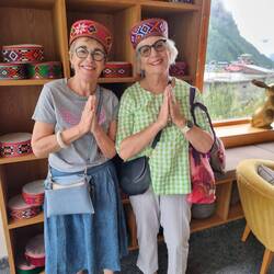 We stopped on the way at this funny little tea house and we're immediately hit with the high altitude and some of us felt quite light headed. One of our group required oxygen mainly because ex bossy nurse Naylor advised him to take some as he looked decidedly unwell and blue around the gills. He perked up later thankfully!